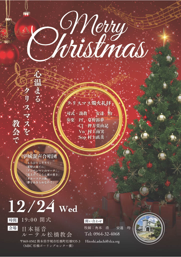 クリスマスイブ 12月24日(水)午後7時 心温まるクリスマスを教会で
